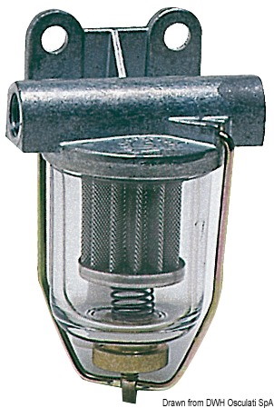 Con vaschetta facilmente estraibile per sostituzione cartuccia filtrante. Particolarmente adatto per motori fuoribordo.