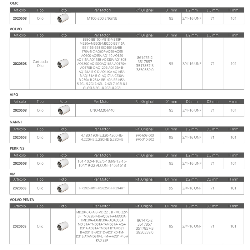 Filtro olio per AIFO-LOMBARDINI D1: 95 MM D2: 3/4 - 16 UNF D3: 71 MM H: 101 MM