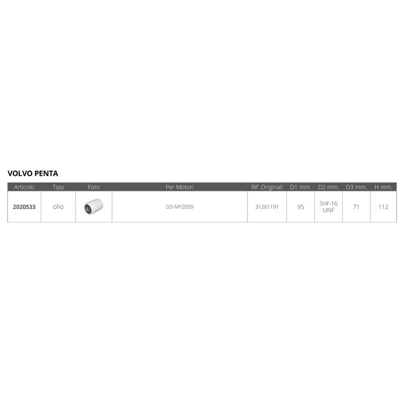 Filtro olio dim. Ø est. 95 mm Ø guarnizione 71 mm altezza mm 96 passo 3/4’ - 16 UNF