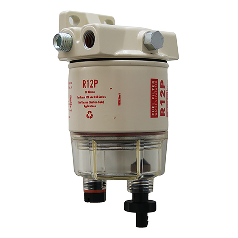 Filtro separatore acqua/gasolio Racor serie SPIN-ON, può essere montato sia sul lato mandata che sul lato aspirazione della pompa gasolio. Raccorderia non fornita.