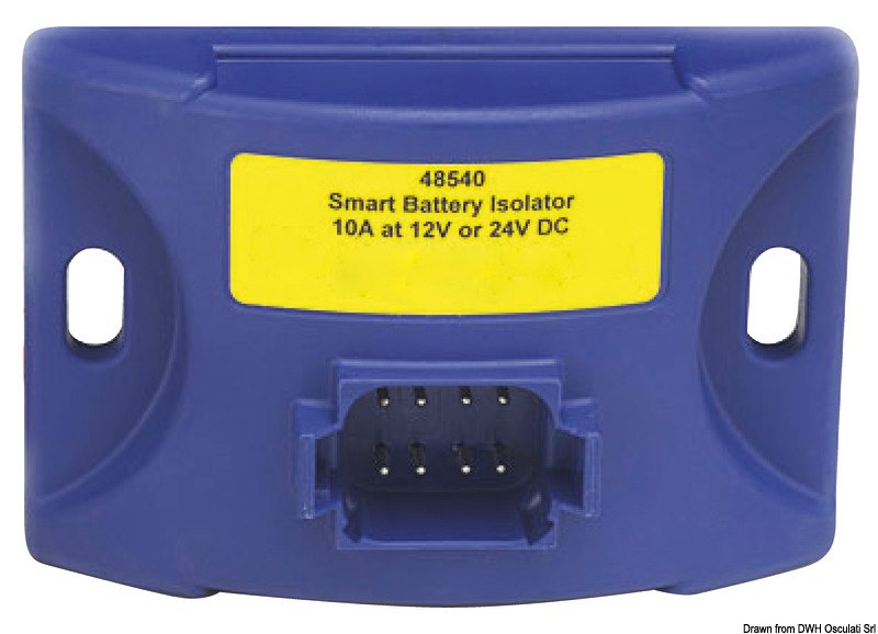 Modulo elettronico concepito per preservare la carica delle batterie. Riconosce in automatico gli impianti a 12 o 24 V. Preserva la tensione della batteria principale (avviamento) isolando la batteria ausiliaria dei servizi quando il voltaggio del sistema scende a livello critico. Automaticamente la riconnette quando il voltaggio risale a livello corretto. Compatibile con gli alternatori a controllo elettronico, elimina i falsi allarmi spesso indotti dagli isolatori a diodi e protegge gli apparati dalla sovratensione.