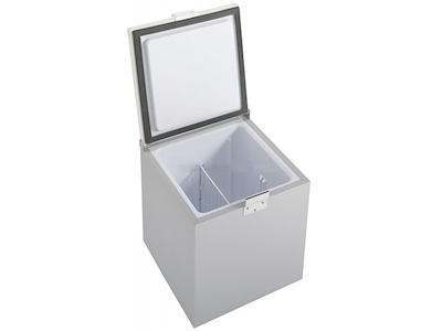 Prodotto molto versatile che può essere utilizzato come frigorifero o come congelatore. Può essere installato con apertura dall’alto (built-in box) o frontale. Il compressore è remotizzabile fino a 1,3 mt. di distanza. Alimentazione 12/24V. Consumo con apertura frontale 0,186 Kwh/24h, con apertura superiore 0,786 Kwh/24h. Peso kg. 17,6. Raggiunge una temperatura di -10° C solo se installato in apertura a pozzetto.