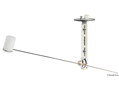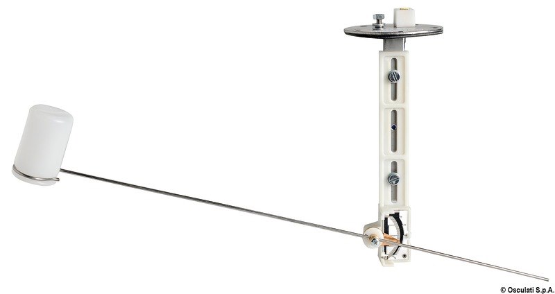 Parti metalliche in acciaio inox. Resistenza a strisciamento in ceramica con contatto in platino (garantiti 4 milioni di movimenti). Regolabile per serbatoi altezza 150-600. Sistema brevettato di ritardo dall'asta mobile per annullare l'effetto beccheggio/rollio.
