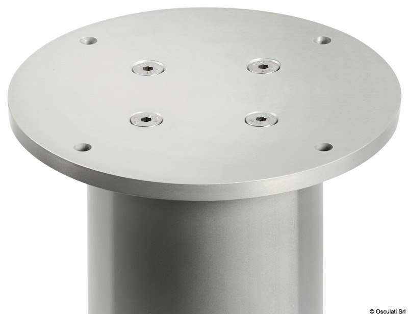 Fabbricata in alluminio anodizzata con componentistica per uso interno ed esterno. Per azionare la gamba è necessario l'interruttore 48.749.01 Ideali per montaggio in coppia. In caso di utilizzo singolo il tavolo può ruotare. E' possibile realizzare altezze personalizzate con un ordine minimo di 10 pezzi.