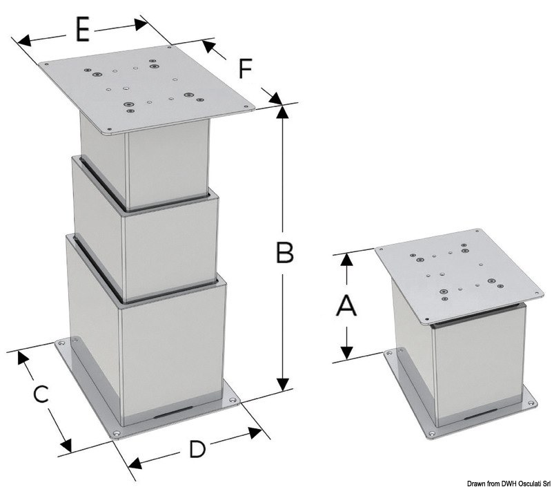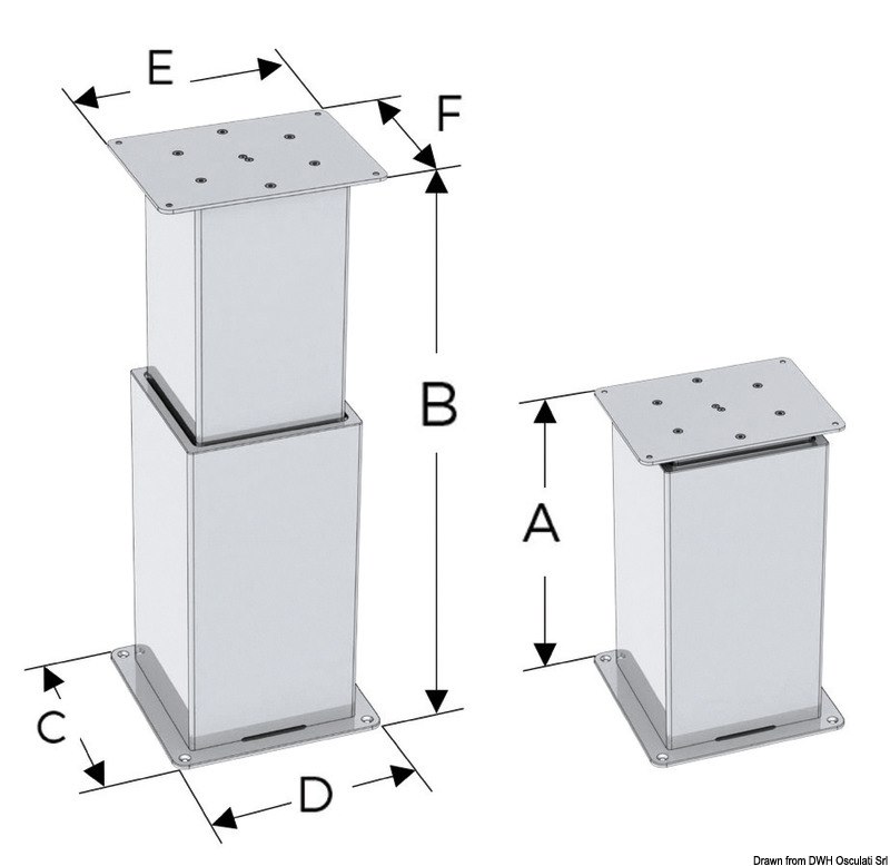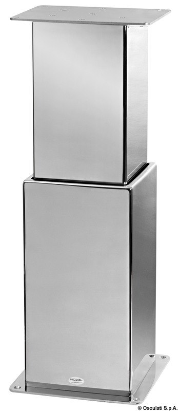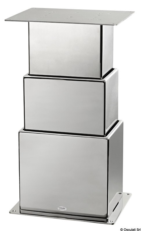 Fabbricata in acciaio inox 316 lucidato a specchio. Adatta ad installazione in interno ed esterno. Per azionare le gambe è necessario un interruttore 6 poli per invertire la polarità. La versione 3 stadi può essere usata in coppia utilizzando la scatola sincronizzatrice 48.749.06. Per minimo 10 pezzi è possibile realizzare altezza a richiesta.