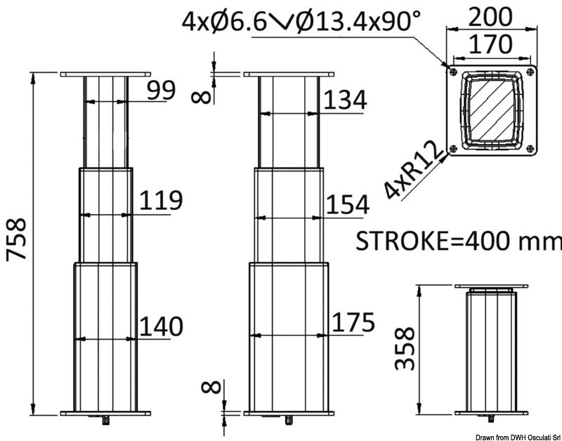 Gamba tavolo tri-telescopica rettangolare 12V all.