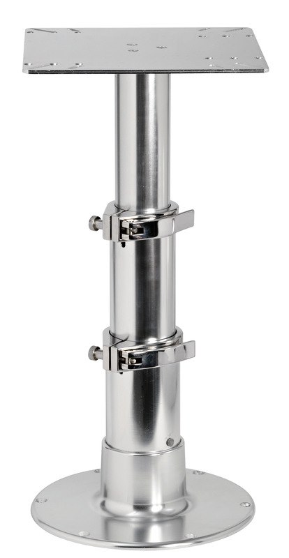Fabbricata in alluminio lucidato a specchio ed anodizzato. Collari di fissaggio in acciaio inox che rendono la gamba molto stabile e robusta. Completa di molla a gas per la risalita. Non necessita di forare il pavimento per la discesa. Tri-telescopica.