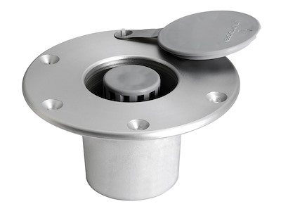 Fabbricata in alluminio anodizzato. Base ad incasso con coperchio di finitura.