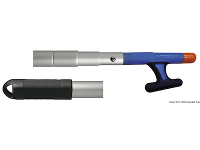 Fabbricato in alluminio anodizzato naturale, con gancio in tecnopolimero bicomponente antisdrucciolo. Bloccaggio rapido in qualsiasi punto tramite rotazione.