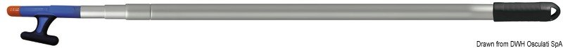 Fabbricato in alluminio anodizzato naturale, con gancio in tecnopolimero bicomponente antisdrucciolo. Bloccaggio rapido in qualsiasi punto tramite rotazione.