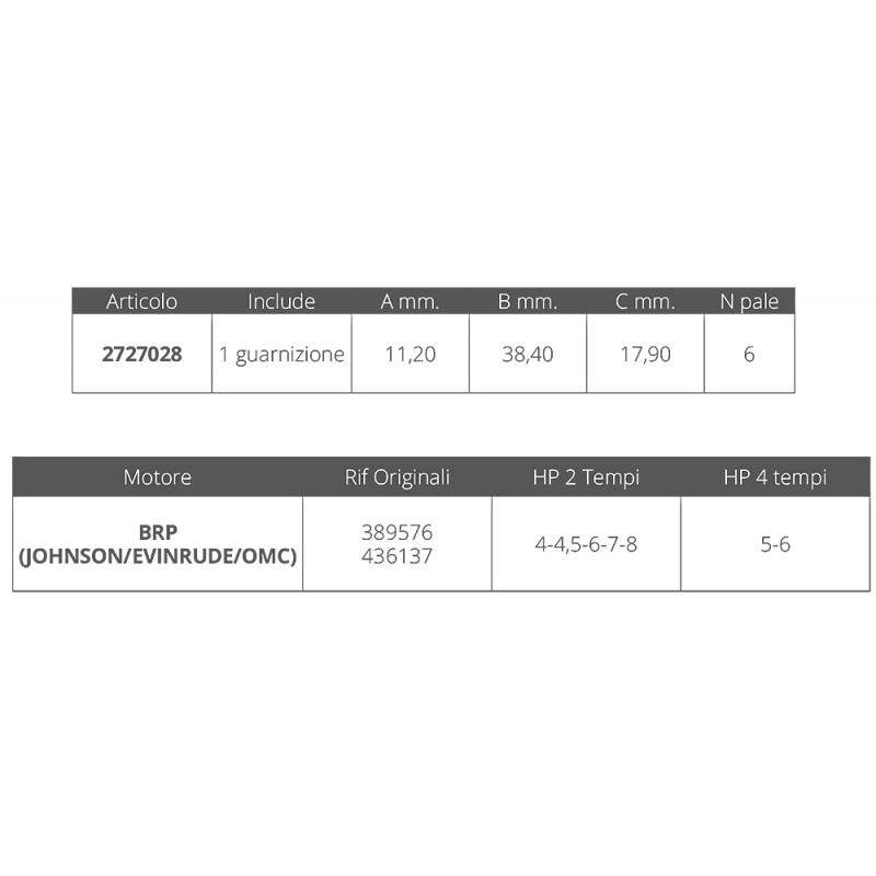 BRP (Johnson / Evinrude / OMC): 389576 / 436137 - HP 2 Tempi 4-4,5-6-7-8 - HP 4 Tempi 5-6