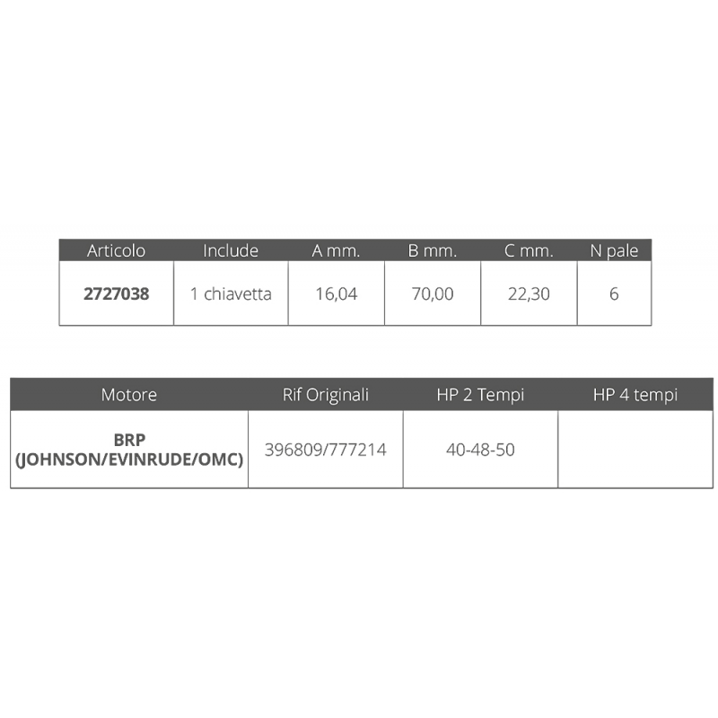 BRP (Johnson / Evinrude / OMC): 396809 / 777214 - HP 2 Tempi 40-48-50