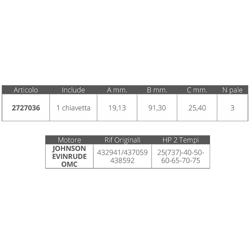 BRP (Johnson / Evinrude / OMC): 432941 / 437059 / 438592 - HP 2 Tempi 25(737)-40-50-60-65-70-75