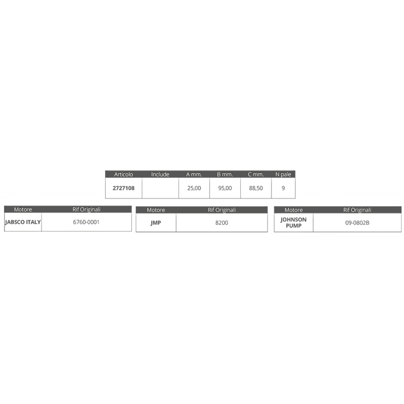 Jabsco: 6760-0001Jmp: 8200Johnson Pump: 09-0802B