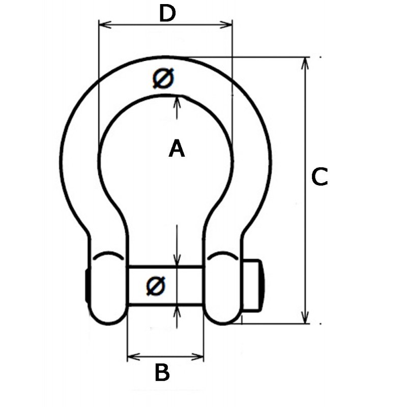 Grilli a cetra in acciaio inox AISI 316. Dimensioni: Ø 4 mm. A 14 mm. B 8 mm. C 29 mm. D 14 mm.