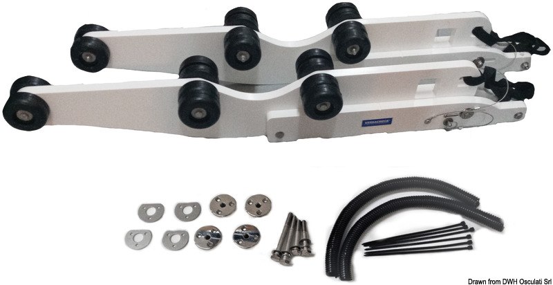 Cinghie di fine corsa incluse (limitano l'angolo di inclinazione). Si può abbinare ad arganelli manuali o elettrici.