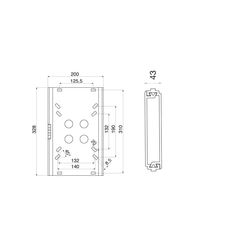 Guida scorrevole in lega leggera mm. 200x330 per art. 6363315/20/23.Si adatta alle scocche art. 6363290/93.