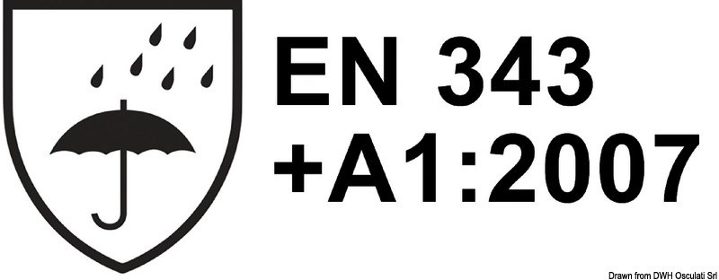 Pantalone: bretelle elastiche, vita regolabile tramite bottoni, tasca interna con cerniera YKK®, EN 343:2003 + A1:2007 3,1 .