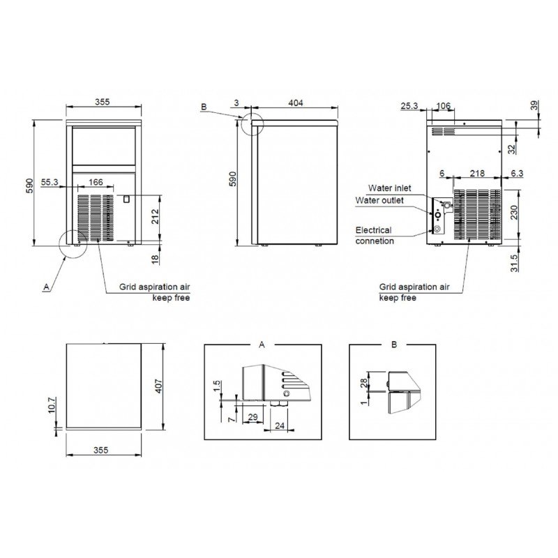 Produttore automatico di ghiaccio trasparente in cubetti, sistema a spruzzo. Nuovo Gas R290, a basso impatto ambientale, e bassi consumi di energia. Mobile in acciaio inox con ventilazione frontale. Necessita di allaccio all’impianto idrico di bordo. Possibilità di incasso. Flangia (da ordinarsi a parte). Tutte le parti interne in plastica, progettate per essere a contatto con ghiaccio e acqua sono certificati MOCA.