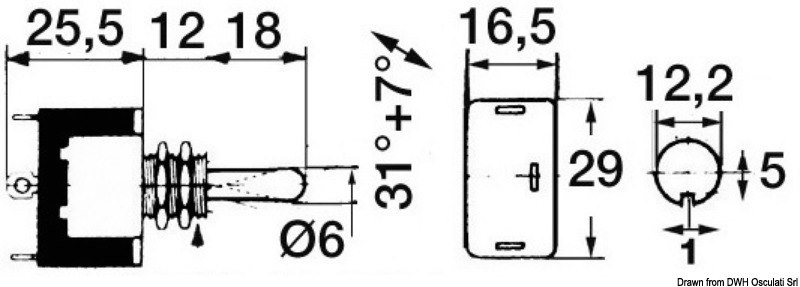 Carcassa in termoindurente resistente ad alta tensione, contatti in argento, leva di manovra e bussola in ottone nichelato. Capacità 15 A. Modello robustissimo e funzionale. Terminali “Faston”, perno 12x10 mm. Collegabili a due circuiti separati.