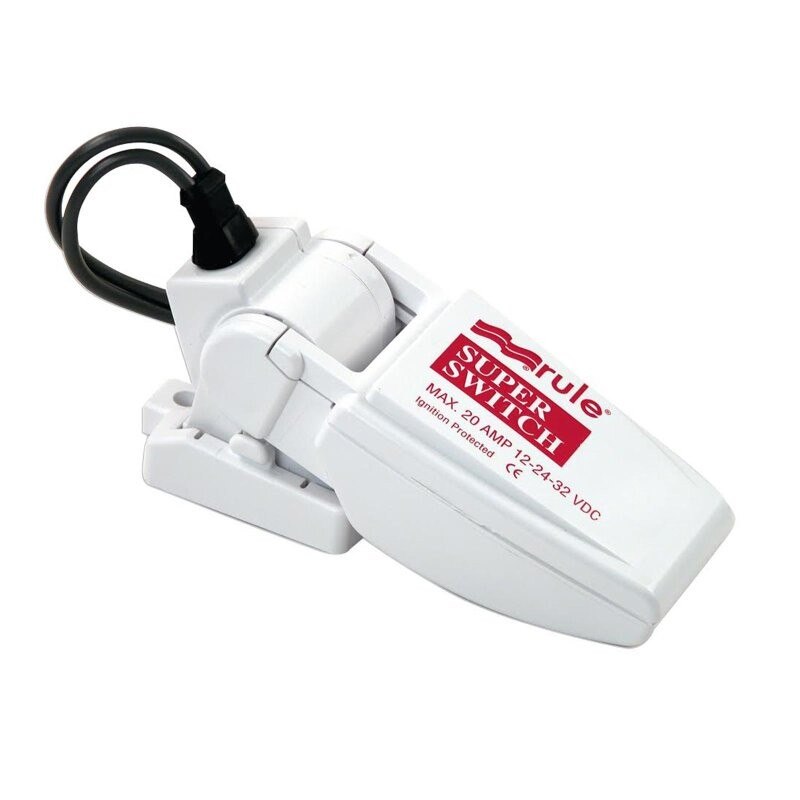 Interruttore a galleggiante Rule, Accende la pompa a 2" (51mm) di livello dell'acqua e la spegne a 3/4" (19mm) di livello dell'acqua.Struttura resistente alla corrosione (guarnizioni durevoli, passacavi impermeabili e cablaggio sigillato).Base di montaggio rimovibile per una facile installazione, pulizia e ispezione.Da usare con pompe fino a 14 ampere (12V) / 7A (24V)Dimensioni: Altezza 5,7 cm / Lunghezza 12,7 cm / Larghezza 5,8 cm(ex codice FNI 1616720)