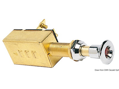 In ottone cromato, contatti argentati. Stesso design degli interruttori 14.918.01/2//5/6. Spia luminosa incorporata sulla testa del pomolo.