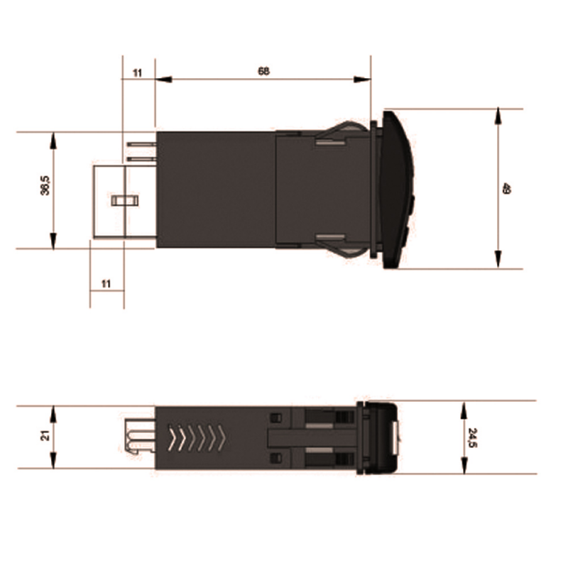 Interruttori intelligenti universali per la gestione di un tergicristallo. Uguali ai Carlingswitch come dimensioni e aspetto, alimentazione 12/24 V, retroilluminazione a LED.acceso-spento, 3 livelli di intermittenza indicati dai LED, 1 o 2 velocità (dove previste dal tergicristallo), parcheggio automatico, programma lavaggio automatico