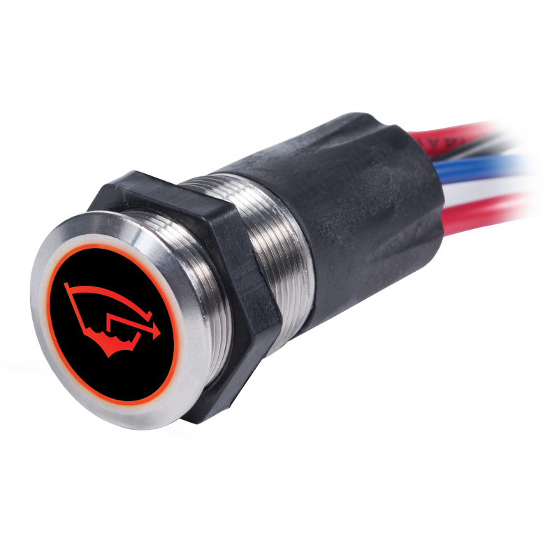 Interruttori retroilluminatiin acciaio inox 316 resistenti alla corrosione. Impermeabili IP67. Protetti contro l’inversione di polarità. Il led blu quando è spento e rosso quando è acceso. Cinque etichette incluse: accessori, luci, luce di ancoraggio, luce di marcia e pompa di sentina.