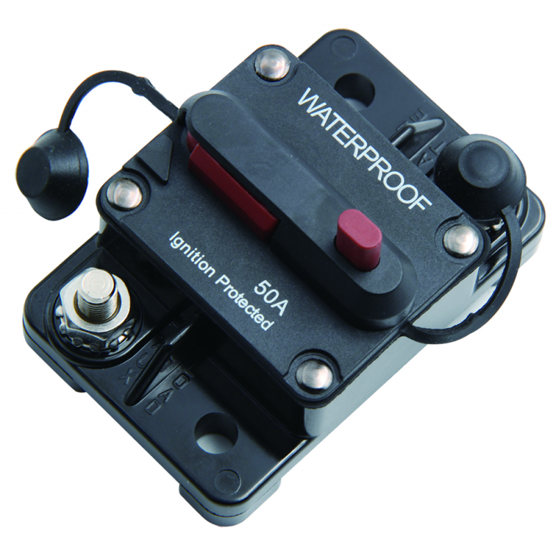 Interruttore termico unipolare per impieghi di elevata potenza come salpa ancora, verricelli, tonneggi ed eliche di manovra. Stagno e sigillato per l’impiego nei locali motori o sentina. Tensione massima 42 V. Dotato di meccanismo di ripristino che indica lo stato dell’interruttore. Conforme alla normativa SAE J 1625.