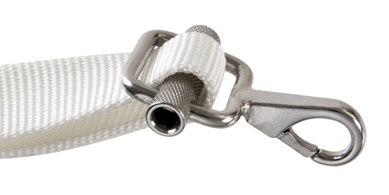 Formato da un nastro di larghezza 25 mm e con lunghezza 3 m (utile 2,90 m). Un'estremità con moschettone e cinghia per regolazione fissa e una con moschettone di tensionamento. Venduto in coppia in confezione espositiva.