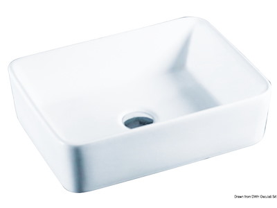 In ceramica bianca per montaggio su piano. Rubinetto non incluso.
