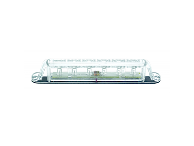 Luce di cortesia a 6 led in plastica, luce bianca naturale, resistente agli spruzzi. Montaggio a filo.