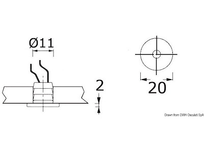 In ottone cromato, lente in policarbonato trasparente. Fissaggio a pressione.