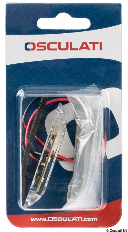 Finitura in acciaio inox lucidato a specchio e lente in policarbonato. Fissaggio tramite viti nascoste dal frontalino.