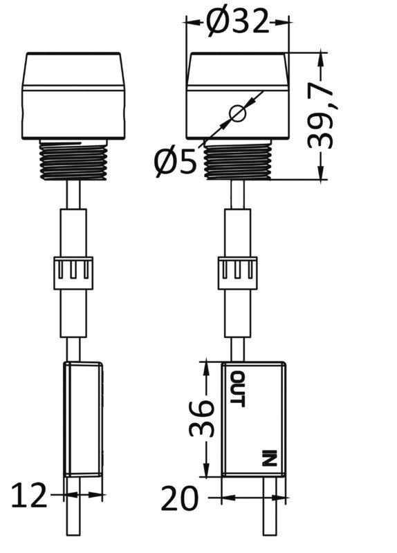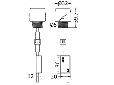 Versione A: Cilindrica Ø 32 mm. Filetto posteriore 1/2" NPT.