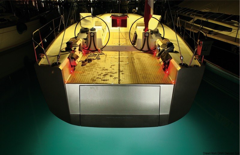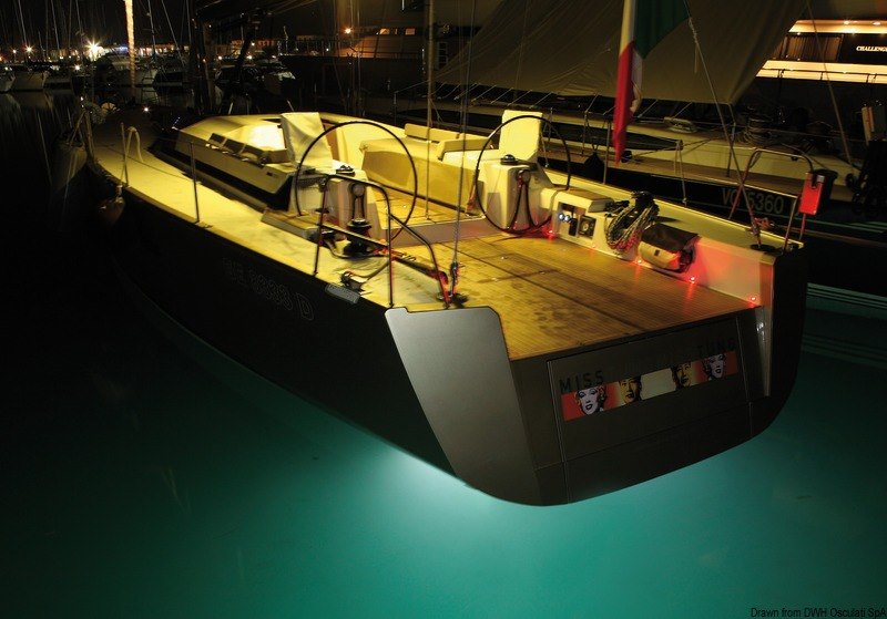 Dati tecnici: sporgenza solo 5 mm; alimentazione: 12/24 V; LED n. 1 x 10 W; Ø foro in carena 63 mm.
