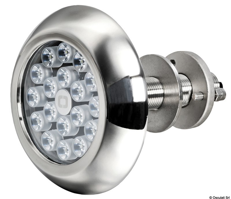 Fabbricata in acciaio inox AISI 316 lucidato a specchio, è dotato di 6 LED alta potenza e di sistema parabolico per aumentare la luminosità.