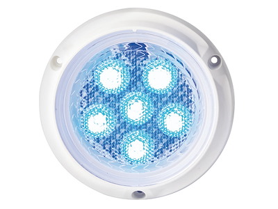 Installazione solo immersa in acqua. Fabbricata in tecnopolimero e dotata di LED ad alta efficienza. Grado di protezione IP68 e certificazione secondo la normativa EN60945.