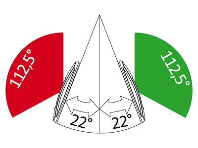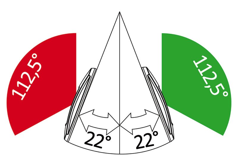Per l’ottimale orientamento del settore luminoso si consiglia il montaggio su una superficie angolato di circa 22° rispetto l’asse di prua.