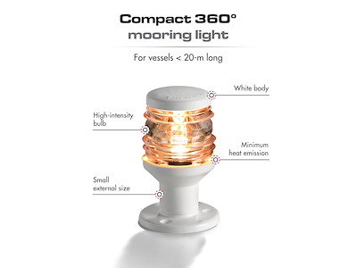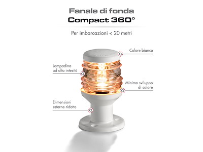 Approvate RINA in accordo al regolamento COLREG72. Presentano la prerogativa di essere alimentate da una piccola lampadina alogena ad alta intensità da 5 W, allo scopo di avere dimensioni esterne ridottissime, minimo sviluppo di calore e basso consumo di corrente. Fissaggio con solo due viti.