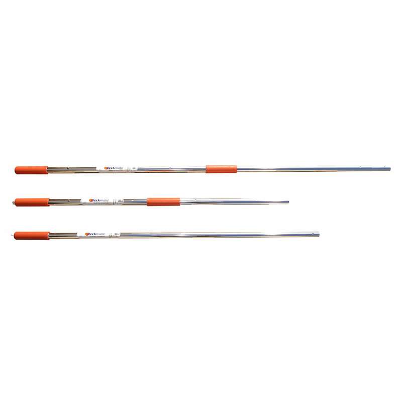 Manico in alluminio anodizzato fisso o telescopico per raggiungere i punti più lontani. Dotato di sistema di bloccaggio a scatto quick-release in acciaio inox e di due comode impugnature antiscivolo. Lunghezza cm 120