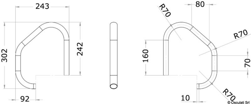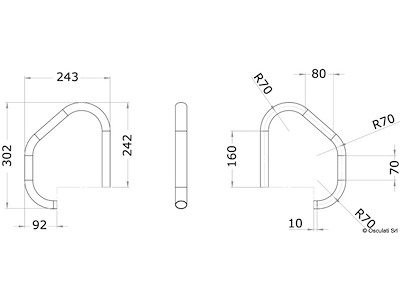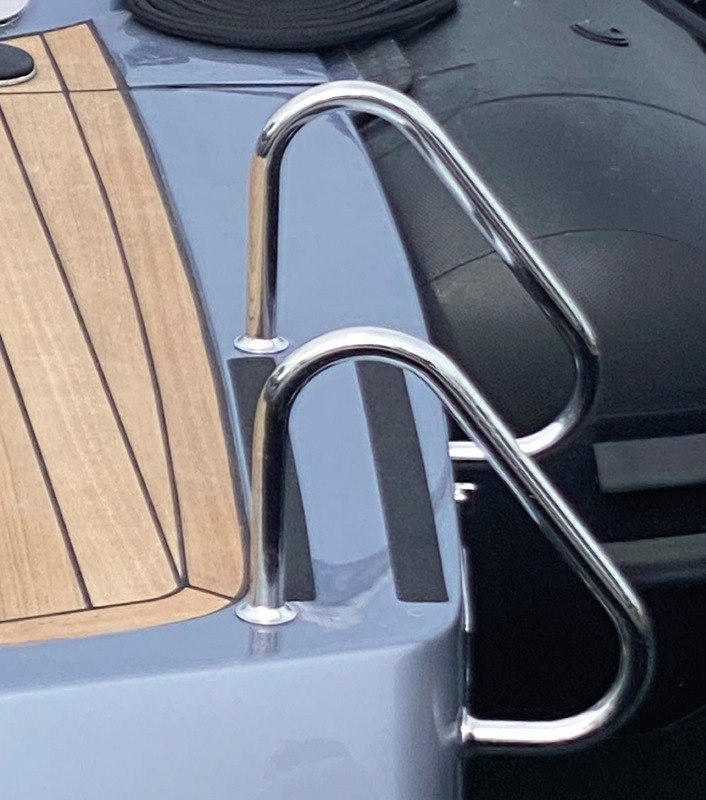 Da installare tramite prigionieri o piastrine vicino alla scaletta, realizzata in acciaio inox 316 lucidato a specchio.