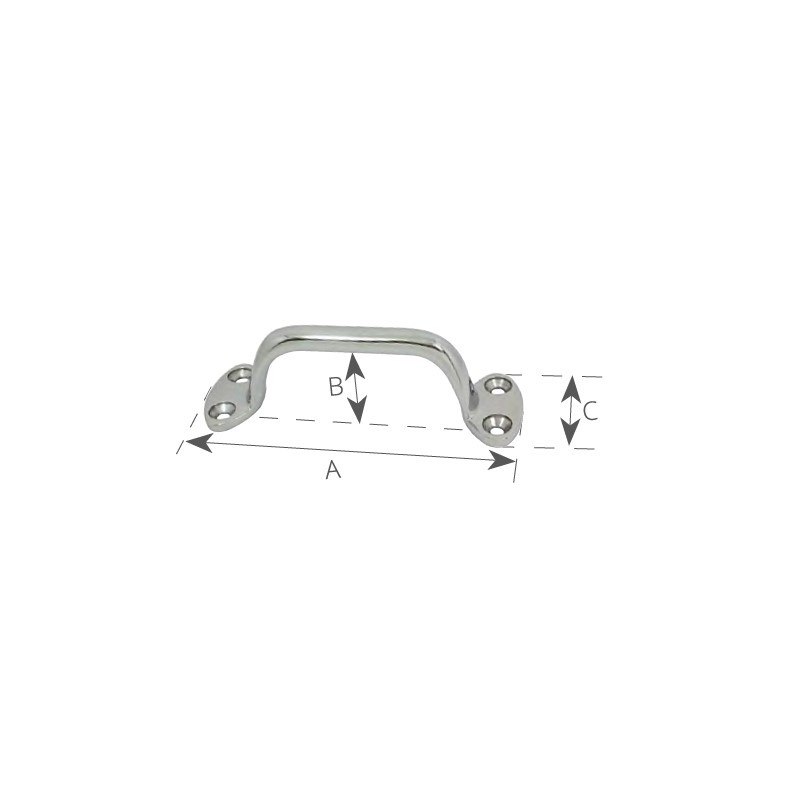 Maniglia per cassetti e sportelli, in ottone cromato.Dim. mm. 76x22x20.