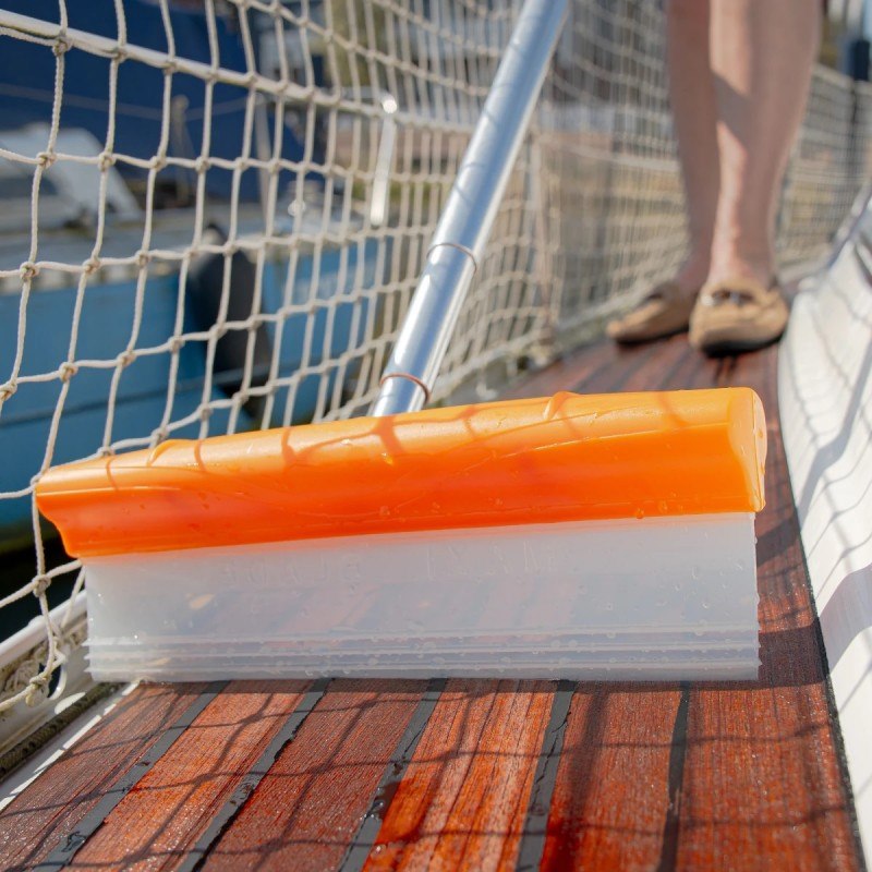 Lama flessibile in silicone a triplo bordo dal design esclusivo consente di rimuovere efficacemente l’acqua in una sola passata, garantendo una finitura impeccabile senza aloni su diverse superfici dure a bordo, tra cui teak, finestre e finiture in gelcoat. Compatibile con i manici Deckmate, garantendo facilità d’uso e durata.