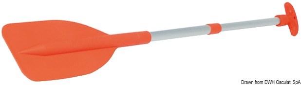 Pala ed impugnatura in plastica arancione ad alta visibilità, tubo in alluminio anodizzato. Particolarmente adatta per zattere di salvataggio e piccoli PRAM di servizio.