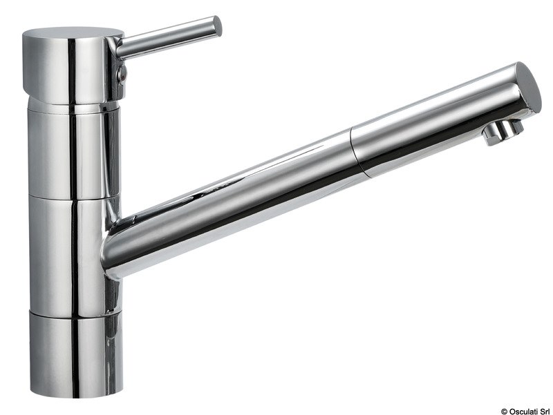Rubinetto in ottone cromato. Getto orientabile, collo lungo per lavelli cucina.