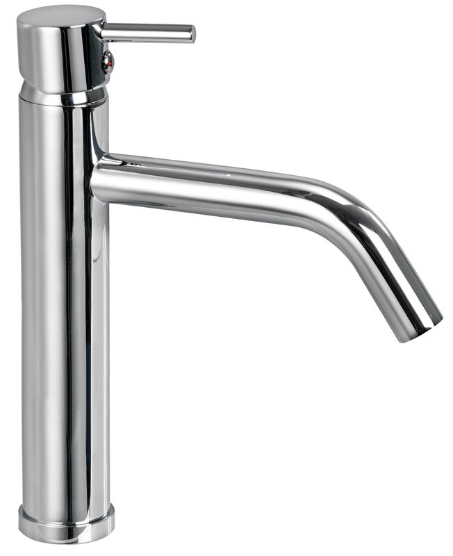Rubinetto in ottone cromato. Da usare con lavabo sporgenti applicati sul piano.