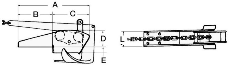 Fuso in acciaio inox AISI 316 lucidato a specchio. Ampio sbalzo per evitare che qualsiasi tipo di ancora tocchi la prua. Pulegge in acciaio inox, adatto per ancore CQR, Bruce, Danforth, Trefoil®, Delta ecc.