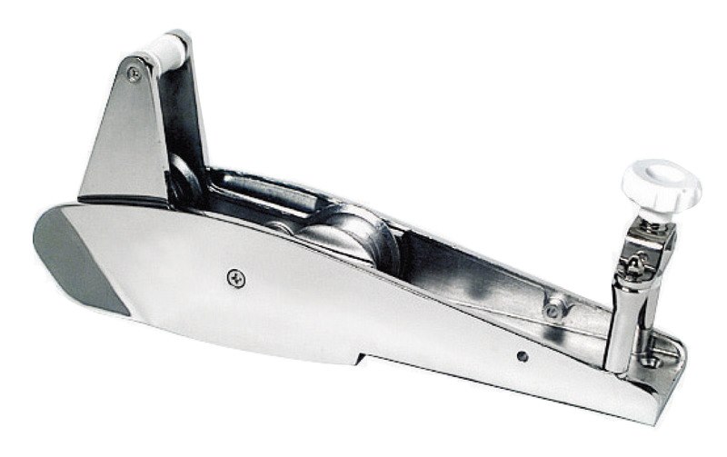 Fuso in acciaio inox AISI 316 lucidato a specchio . Ampio sbalzo per evitare che qualsiasi tipo di ancora tocchi la prua. Pulegge in acciaio inox , adatto per ancore CQR, Bruce, Danforth, Trefoil®, Delta ecc.