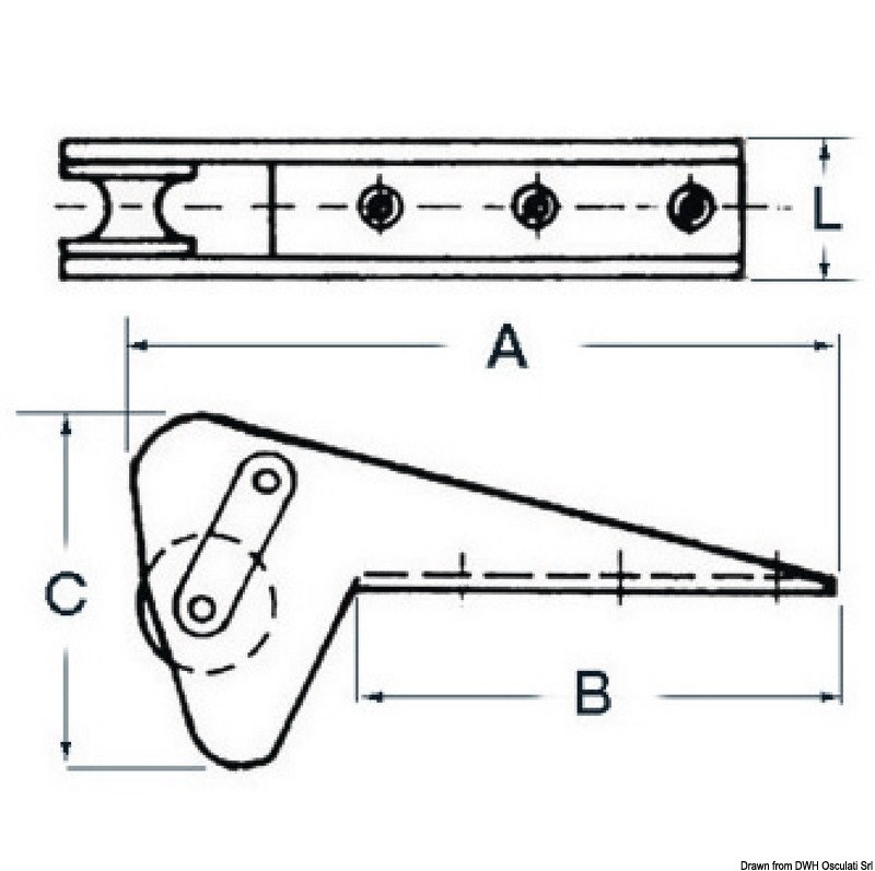 In acciaio inox 304 lucidato , fabbricato in lamiera. Sfrutta la forma delle Bruce e Trefoil® al fine di essere autobloccante . Puleggia in nylon .
